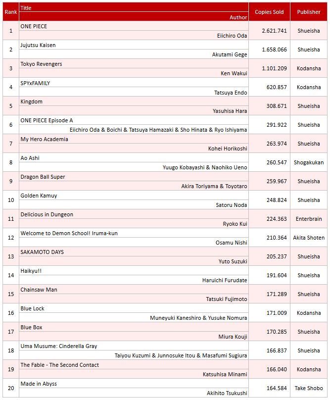 ⑦呪術作者、焦って本編に鬼滅要素を入れてDX日輪刀でトレンド入りを果たすも「#今週のワンピ」にトレンドで負ける