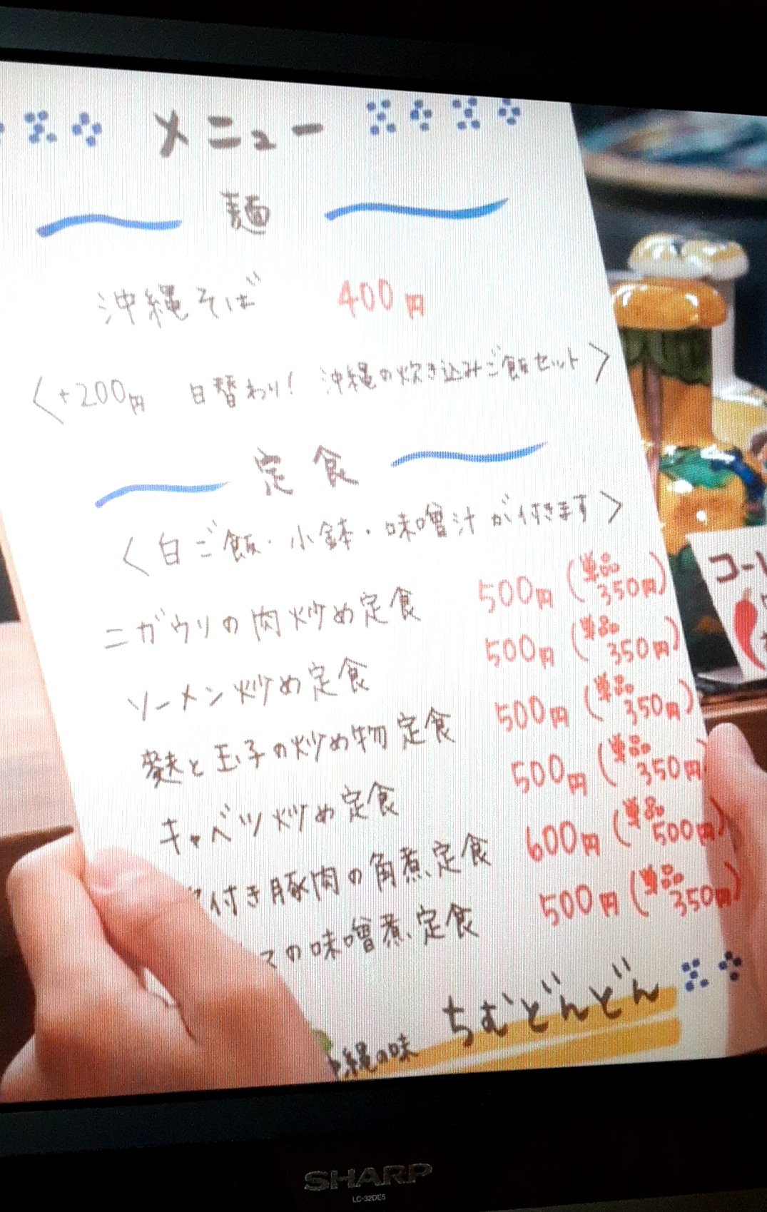 沖縄料理の名前そのままにすると東京のお客さんに伝わりにくいため、ゴーヤチャンプル→にがうりの肉炒め定食のようにメニュー名を置き換える