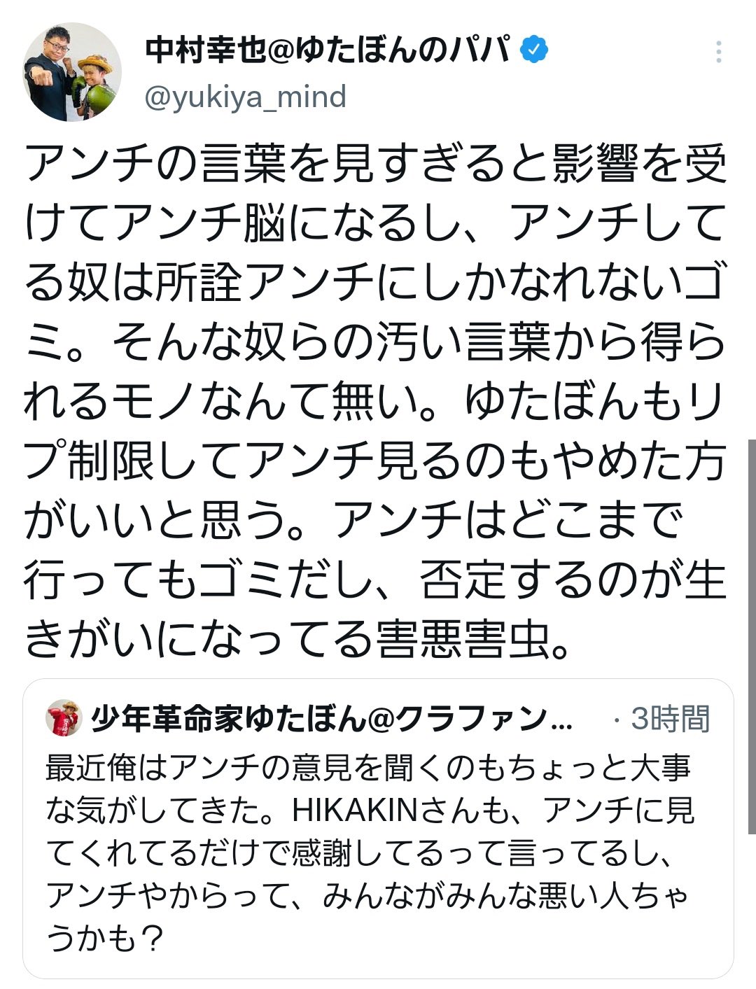 自分の意見に合わない忠告や論理的な批判も全部アンチで片付けてそう
