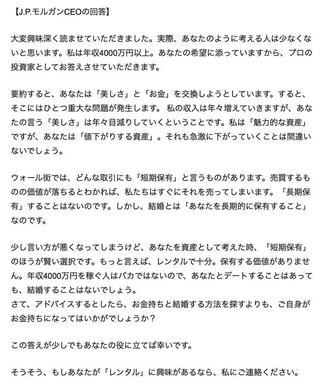 女さん(25)「年収4000万男と結婚したい。どうすれば?」米投資銀行CEO「……」→結果・・・ 2022/9/10 不思議.net 1: それでも動く名無し 2022/07/14(木) 12:00:50.21 ID:KHDKHQn60 続きを読む Source: 不思議.net