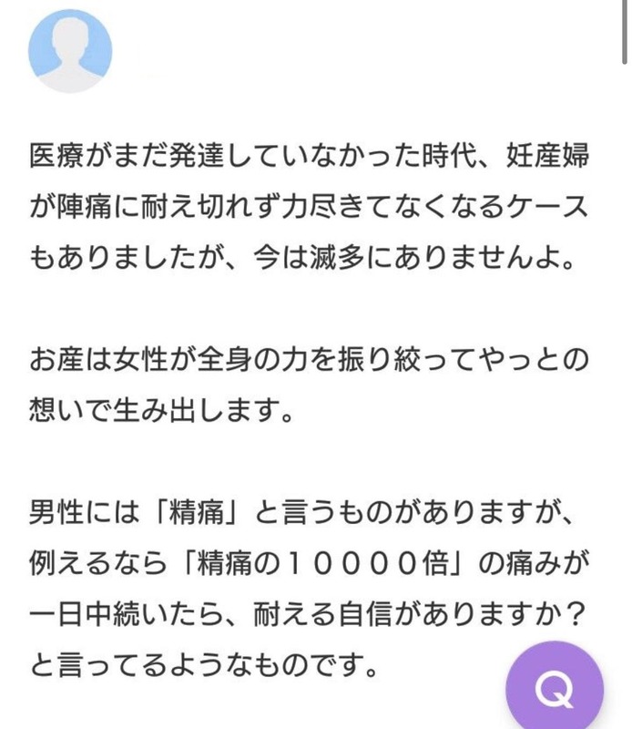 【定期】女「陣痛を馬鹿にする男へ。あんたらは精通が10000倍になったら耐えられますか?」