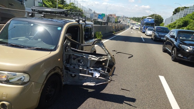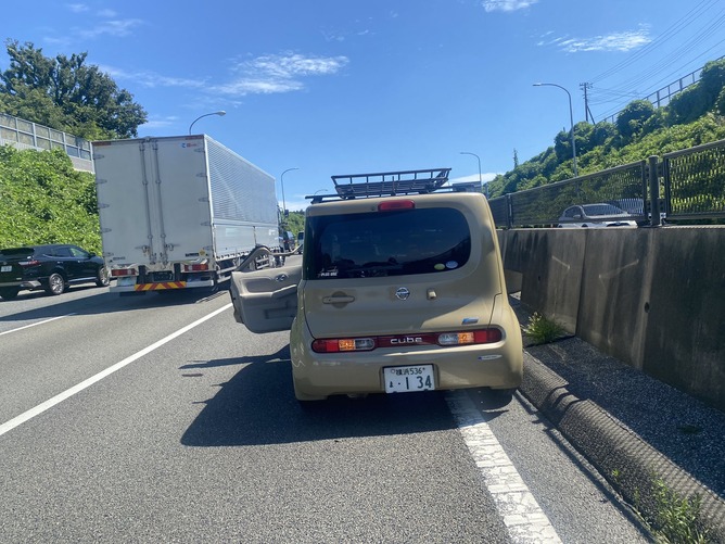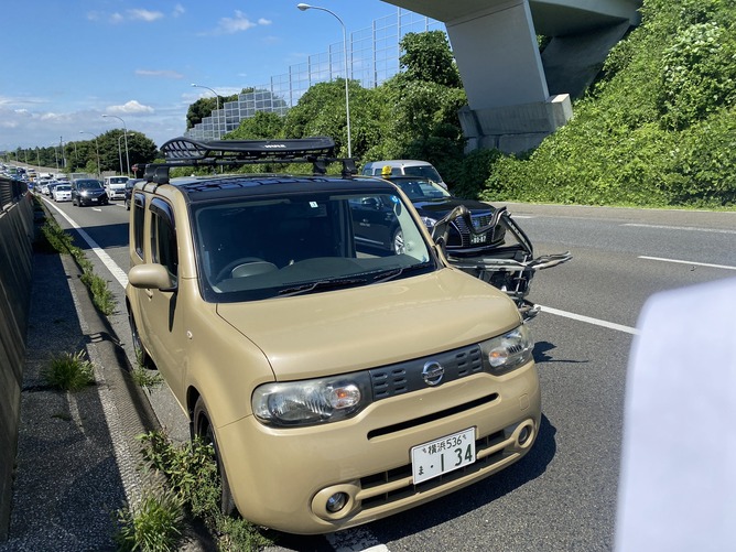 今さっき12:30頃保土ヶ谷バイパス南本宿付近でトラックに当て逃げされました。