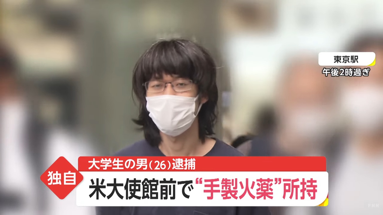 東京・港区のアメリカ大使館に火薬を投げ入れるために、手製の火薬を持っていた疑いで、男が警視庁公安部に逮捕された。