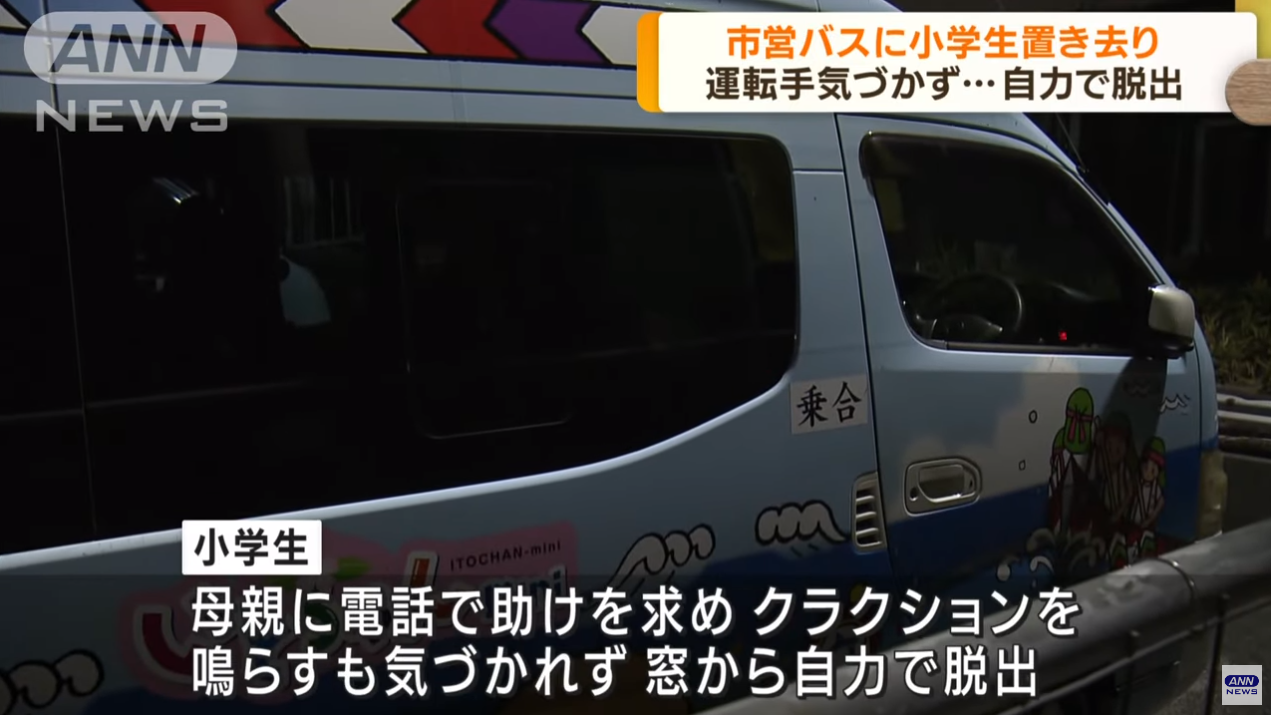 【悲報】 市営バスに子ども置き去り、クラクション鳴らすも気づかれず自力で脱出