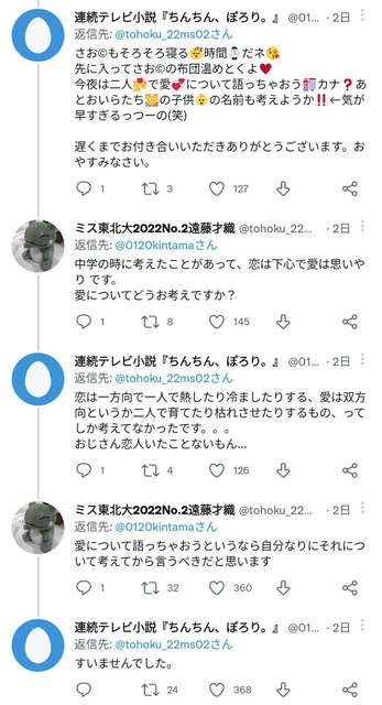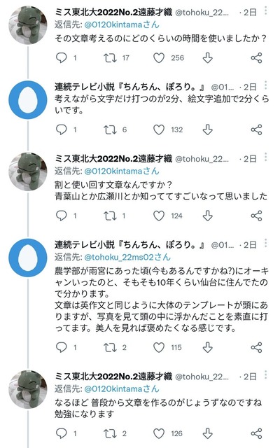— ミス東北大2022No.2遠藤才織 (@tohoku_22ms02) September 18, 2022