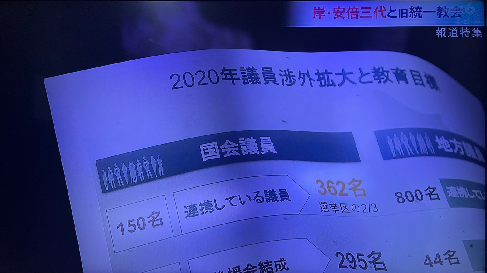 旧統一教会は2020年までに教団を「国民の宗教」とする。