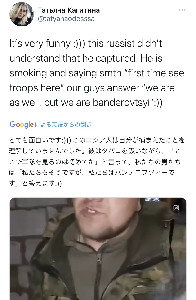 彼はタバコを吸いながら「ここで軍隊を見るのは初めてだ」と言い、我々の仲間は「我々もそうだが、我々はウクライナ兵だ」と答えた。