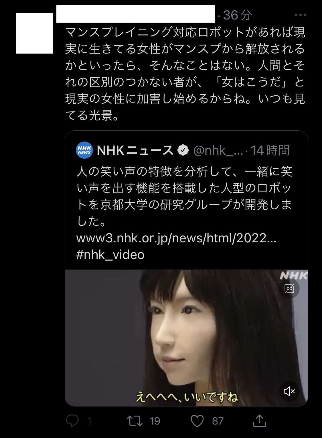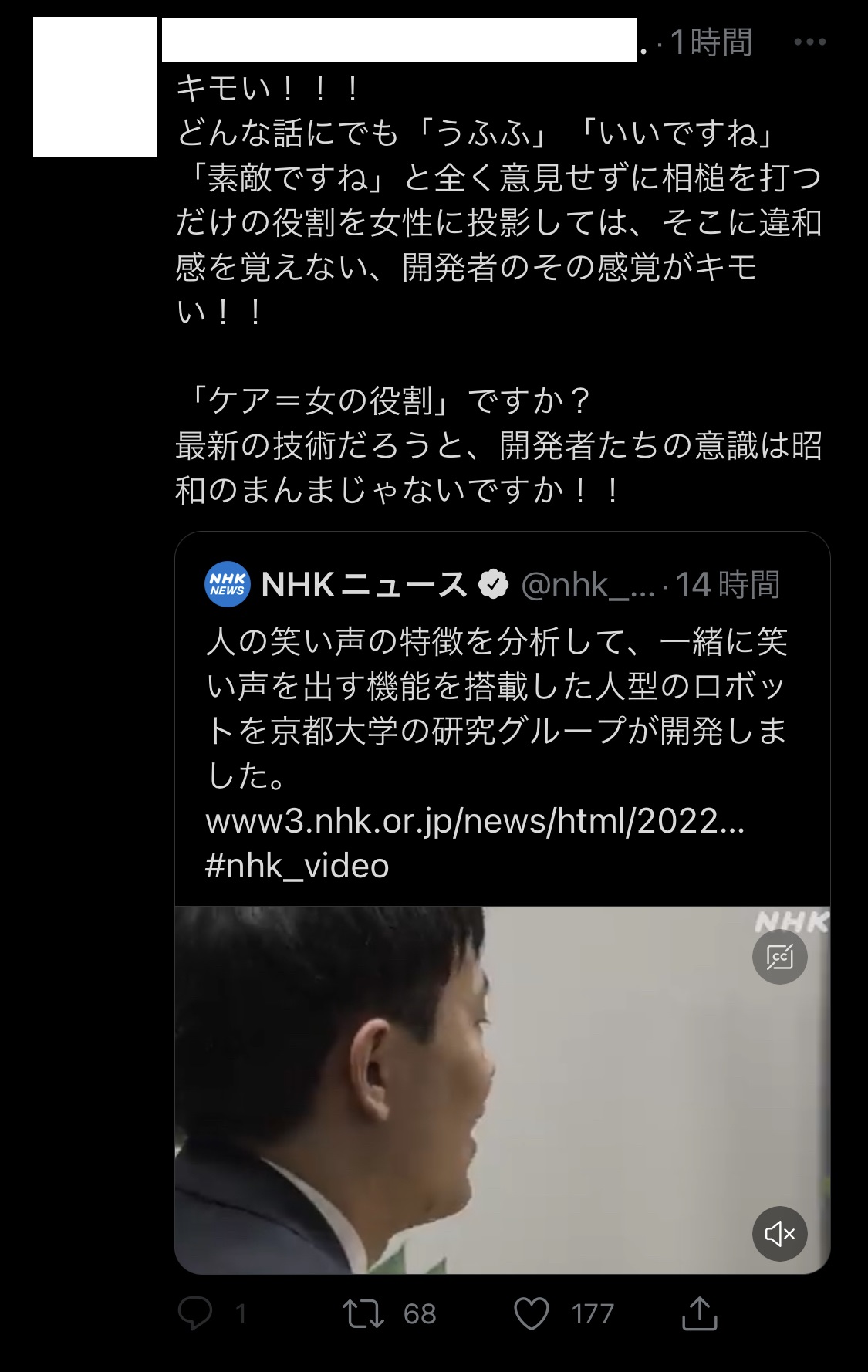 むしろロボットにより女性がそういう役やらなくて良くなるんだからいいことなのでは