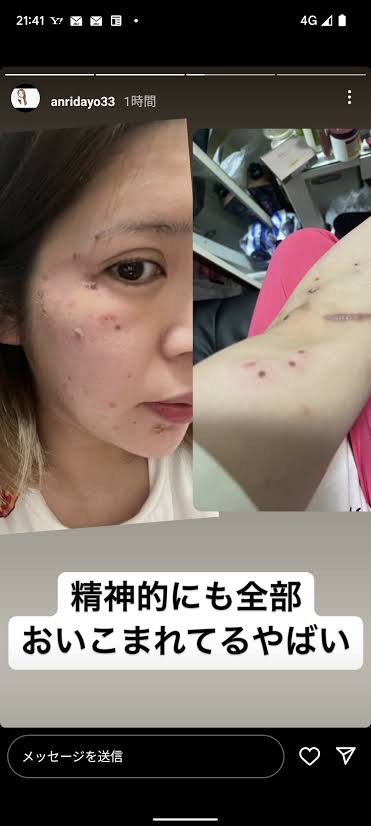 坂口さんはストーリーズで、真っ暗な背景とともに「信用もくそもない」「裏切るより裏切られる方がマシ」という言葉を投稿。続けて、顔や身体に傷や炎症ができているとみられる写真をアップし、「精神的にも全部おいこまれてるやばい」と〝SOS〟も。再び真っ暗な背景に戻し、「熱も38度超え しんどいし 頭も喉も皮膚もいたい。。 オワタ」と締めくくった。