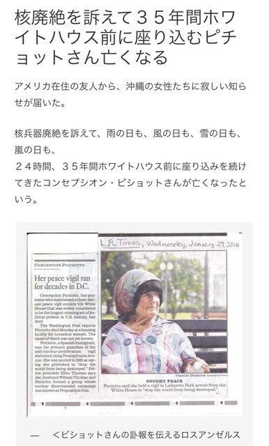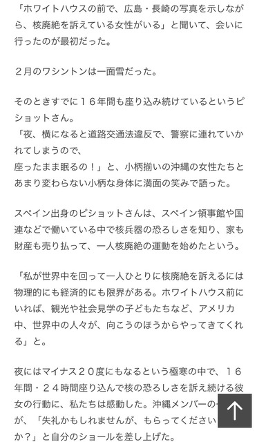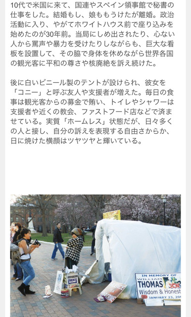 ホワイトハウスの前を通ったら、そこで30年、反原爆を訴えて24時間365日座り込みの抗議をしている女性がいることを初めて知りました!とても小柄なおばあさんで、優しい語り口でした…