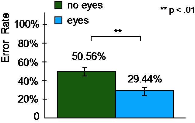 結果として、目をつけた自動運転車は、歩行者との交通事故を低減させる可能性があることが明らかとなった。全体的なエラー率として、目のない車で50.56%だったものが、目のある車で29.44%と4割ほど低下した。また、男女間で行動の差が生じたこともわかった。