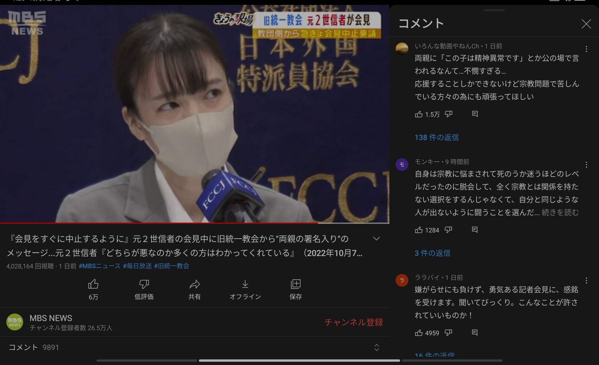 【悲報】統一教会信者の親から娘に手紙が来た例の会見、400万再生され広まってしまう 2022/10/9 哲学ニュースnwk 1: それでも動く名無し 2022/10/09(日) 01:47:09.48 ID:9ULBrna30 続きを読む Source: 哲学ニュースnwk