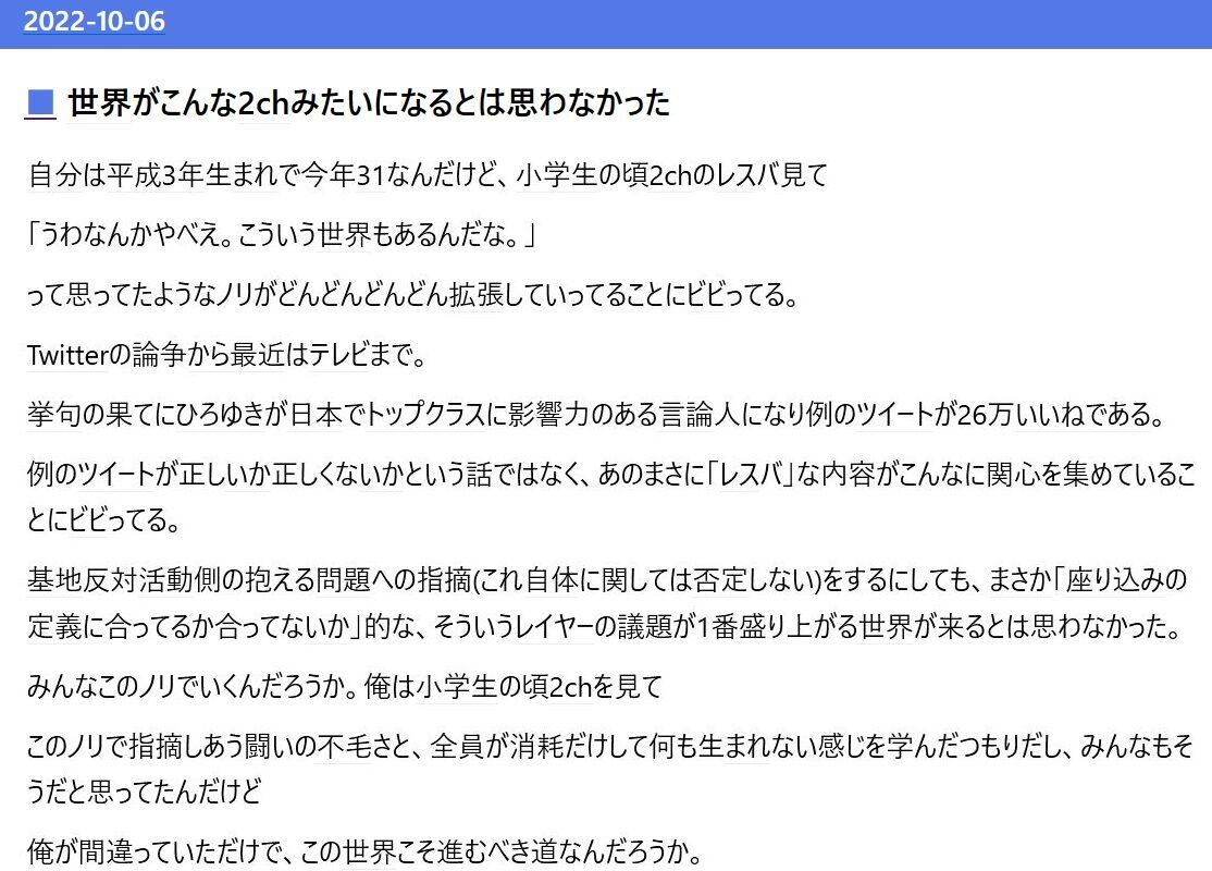 識者「世界がこんな2ちゃんみたいになると思わなかった…」←これ 2022/10/9 不思議.net 1: 風吹けば名無し 2022/10/07(金) 01:02:48.27 ID:csye26ND0 続きを読む Source: 不思議.net