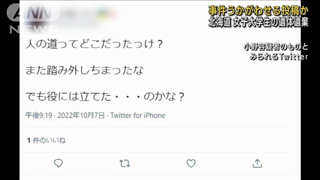 事件との関連うかがわせる投稿か 札幌・女子大学生遺棄