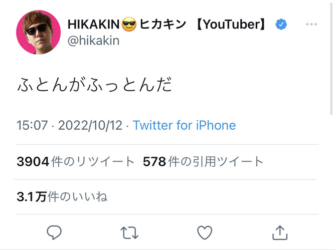 — HIKAKIN😎ヒカキン 【YouTuber】 (@hikakin) October 12, 2022