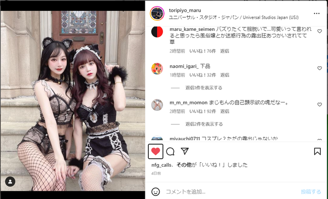 ※その後インスタ女子が「脱いだのは撮影時だけです」と釈明