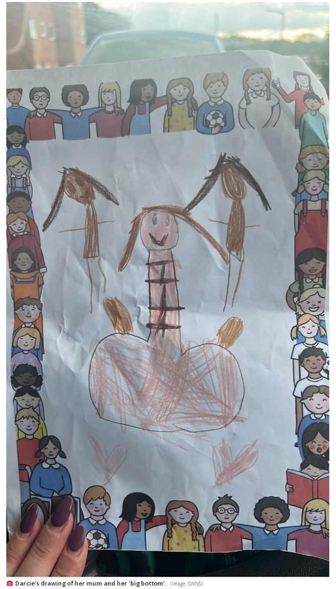 子供の「お絵描き」は思わず吹き出しそうになるほどユニークな仕上がりになることもある。イギリスに住むある母親も、娘が学校で描いた“ママの絵”が人間離れしたような大きなお尻に