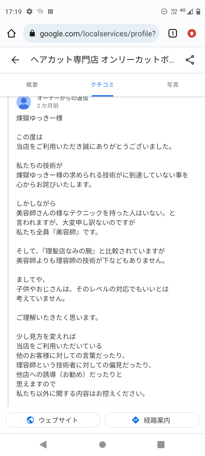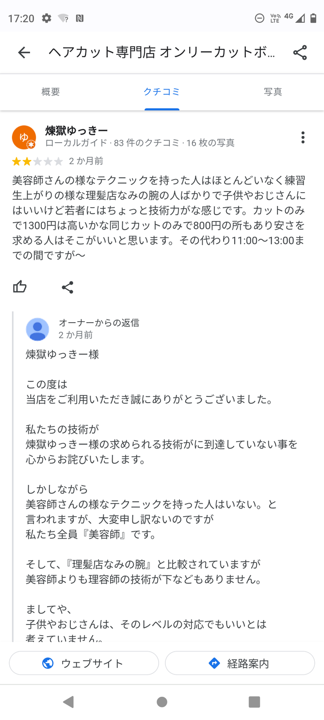 言ってることは正論でも口コミに長文返信してる店ってちょっとこわい
