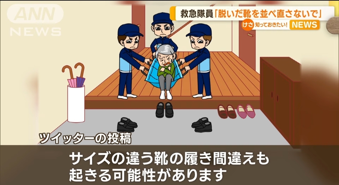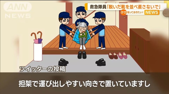 【画像】救急隊員が自宅に出動したときに玄関で脱いだ靴を動かしてはいけない理由wwwww