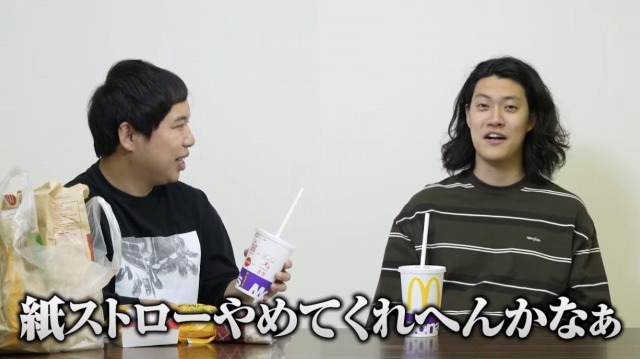 紙ストローじゃなくて細いトイレットペーパーの芯だから