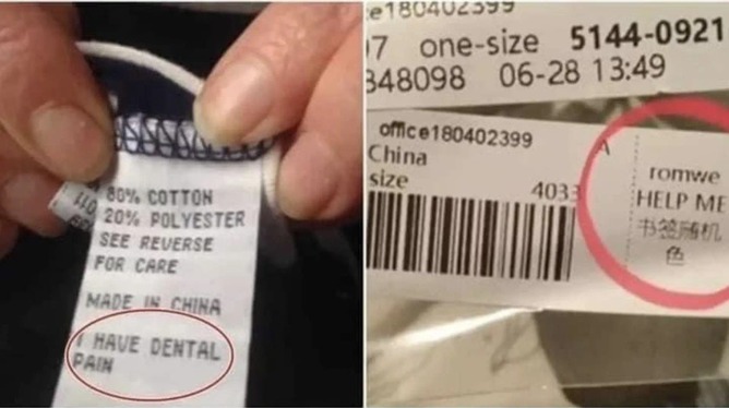 TikTokやTwitterなどのSNS上ではこうした文脈に基づき、「SHEINの洋服のタグに労働者のメッセージが隠されている」として、複数のが画像がたびたび拡散している。海外で先に広がっており、すでにファクトチェックされている。