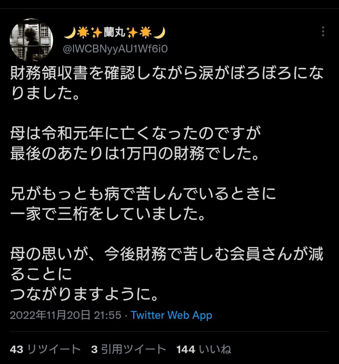 母の思いが、今後財務で苦しむ会員さんが減ることにつながりますように。