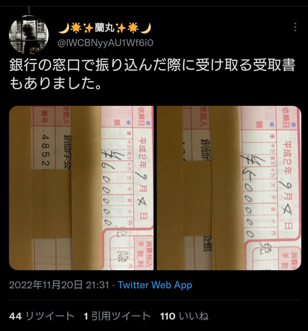 【ツイッター】 創価学会の息子 「母が行った”財務”の受領証がこちらです」 (画像あり)