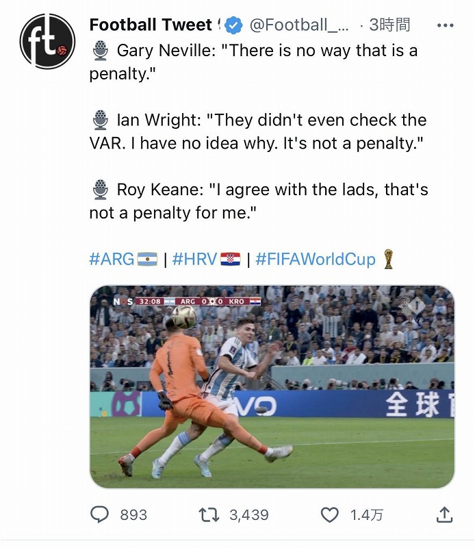 まあ、オランダアルゼンチン戦はそれ以前にめちゃくちゃな審判だったけど