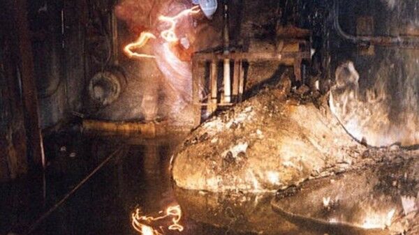 チェルノブイリの事故で、ドロドロに溶けだした炉心が再度固まった状態。見ただけで死ぬと言われている通称「象の足」だ。直径2m程なのにその重量はなんと100トン。