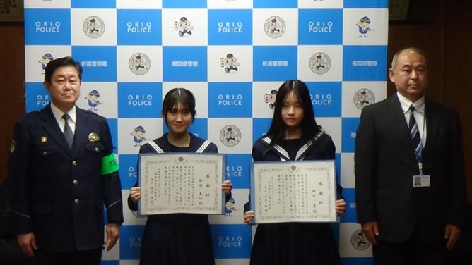 今月12日、福岡県水巻町で歩道橋の上から飛び降りようとしていた男性を助けたとして、中学生2人に折尾警察署から感謝状が贈られました。