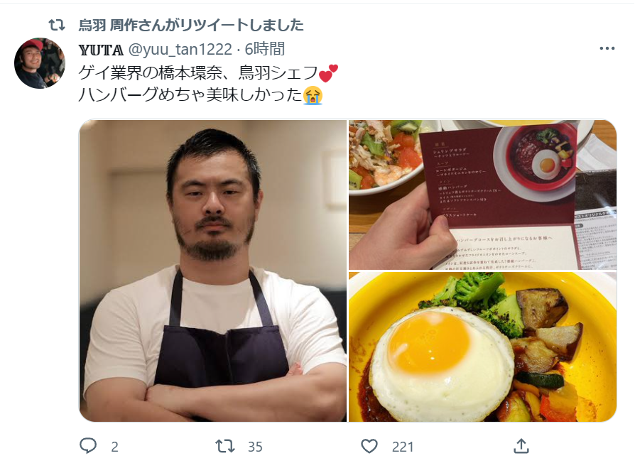 > ゲイ業界の橋本環奈、鳥羽シェフ??