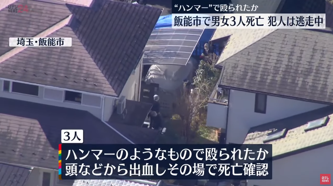 「大声を出し男が騒いでいる」男女3人倒れ…死亡 “ハンマー”持ち男逃走 飯能市#日テレNEWShttps://t.co/YUCOZ2fmjw