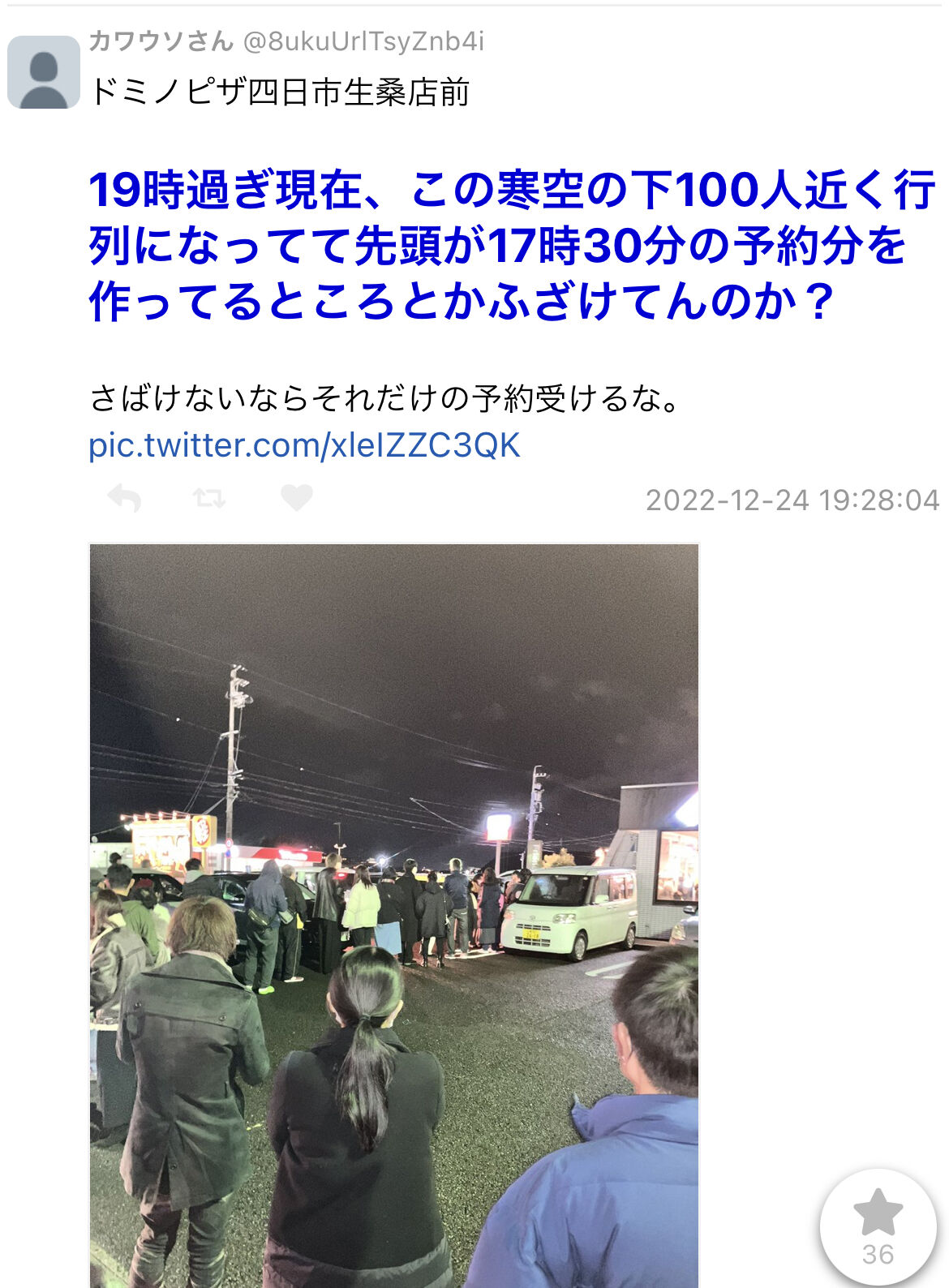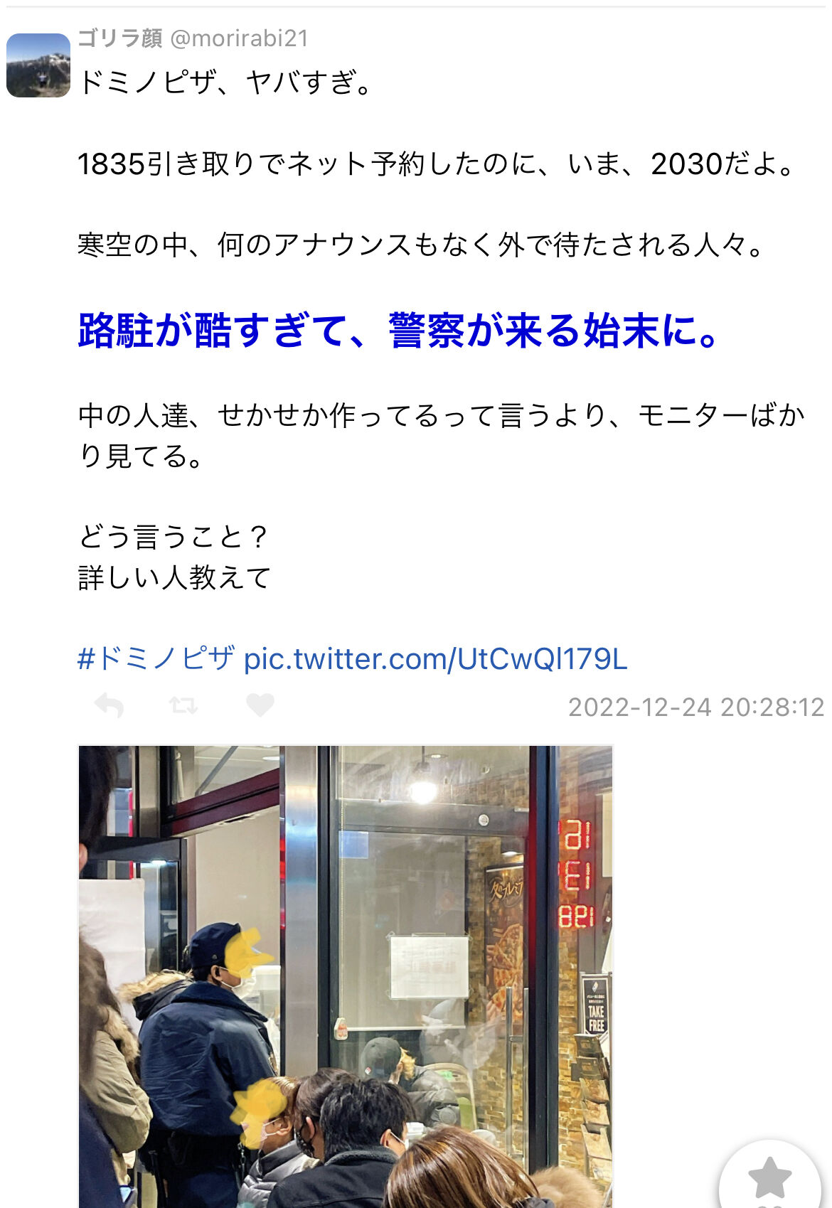 【悲報】日本人、ドミノピザに大行列で大混乱 寒空の下キャンセルできず無限に並び続ける 警察突入 2022/12/25 哲学ニュースnwk 1: それでも動く名無し 2022/12/25(日) 20:36:12.49 ID:WIUhDtjo0XMAS 続きを読む Source: 哲学ニュースnwk
