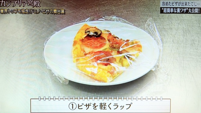 まずピザをラップして尻に敷きます