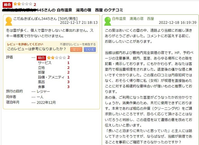 — 女将兼湯守@西屋旅館 (@Nishiyaryokan) December 16, 2022