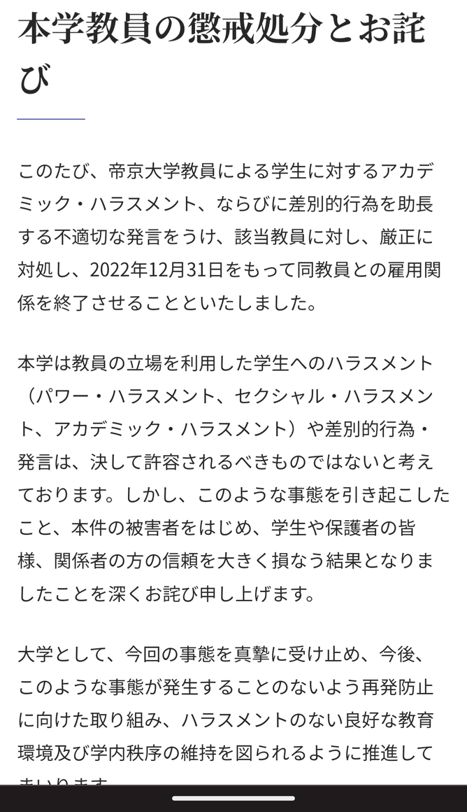 これバリバリ実績あって大学の研究上欠かせないような教授ならクビではない処分になってそう