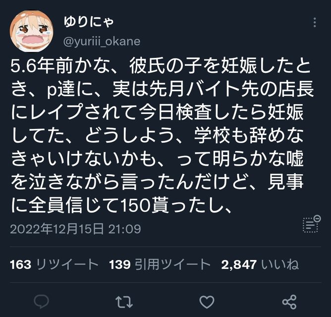 — ゆりにゃ (@yuriii_okane) December 15, 2022