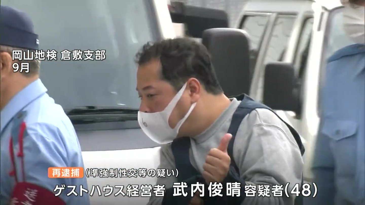 準強制性交等の疑いで再逮捕されたのは、里庄町のゲストハウス経営者・武内俊晴容疑者(48)です。