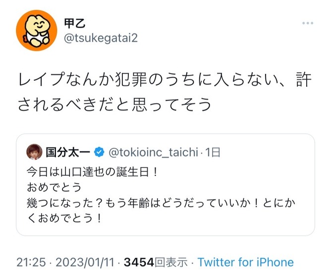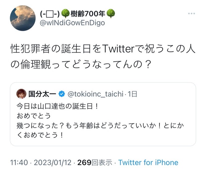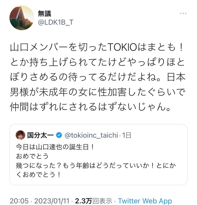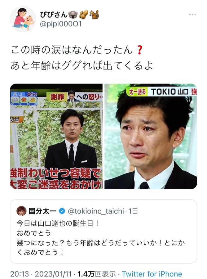幾つになった?もう年齢はどうだっていいか!とにかくおめでとう!— 国分太一 (@tokioinc_taichi) January 10, 2023