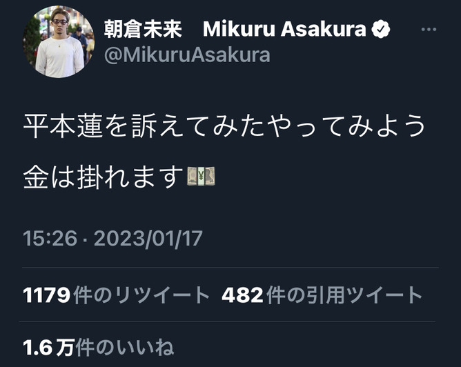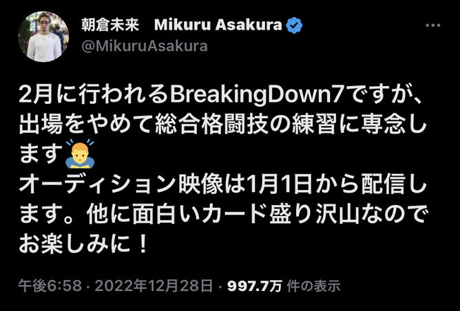 — 朝倉未来 Mikuru Asakura (@MikuruAsakura) January 17, 2023
