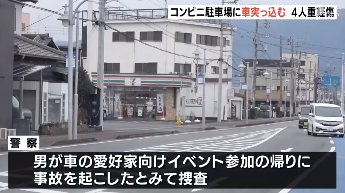 コンビニ駐車場に猛スピードのスポーツカー突っ込む 車などに次々衝突し中学生など4人重軽傷 19歳会社員男を逮捕=静岡・富士市