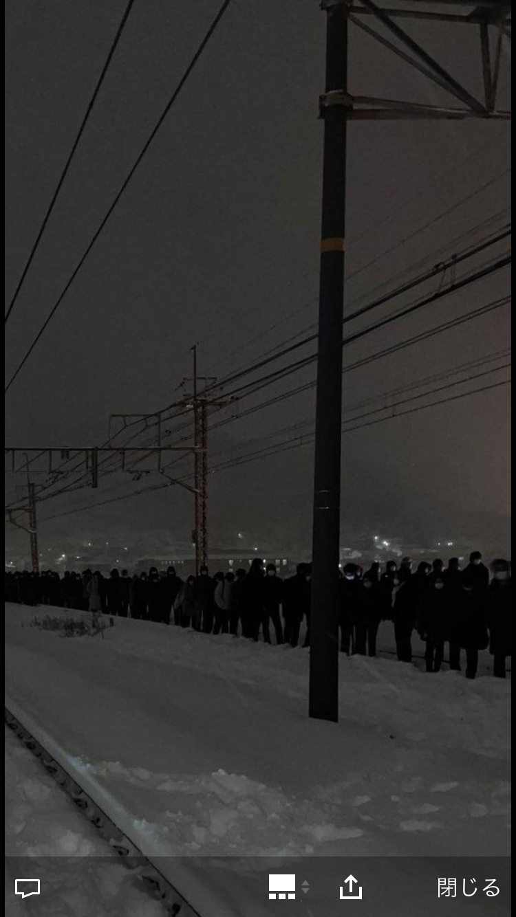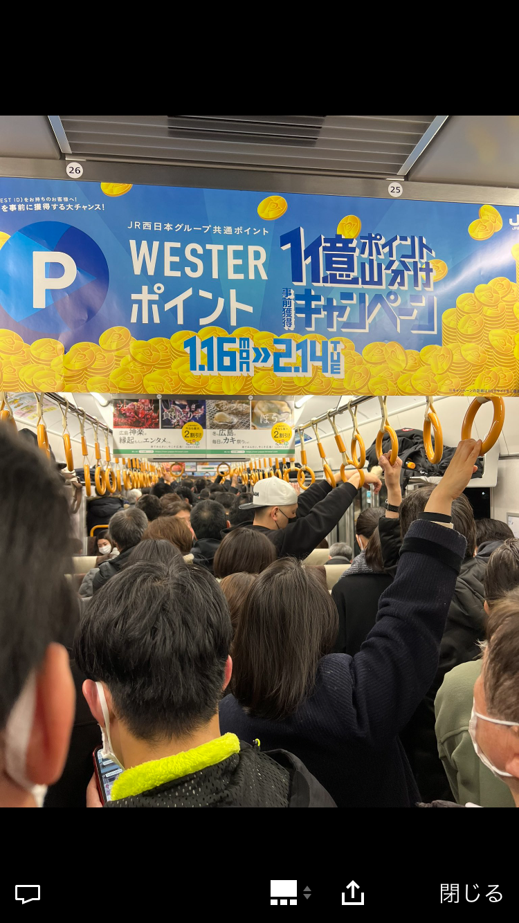 山科駅に停車中の車両、中には小学生も
