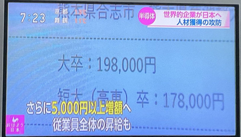 熊本のTSMCの初任給が28万円って言ってるのに、
