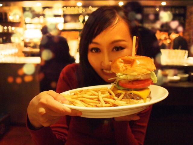 ビーフパティ4枚、ゴーダチーズ6枚を重ねた、総重量507グラムものボリューム満点超大型チーズバーガーです☆