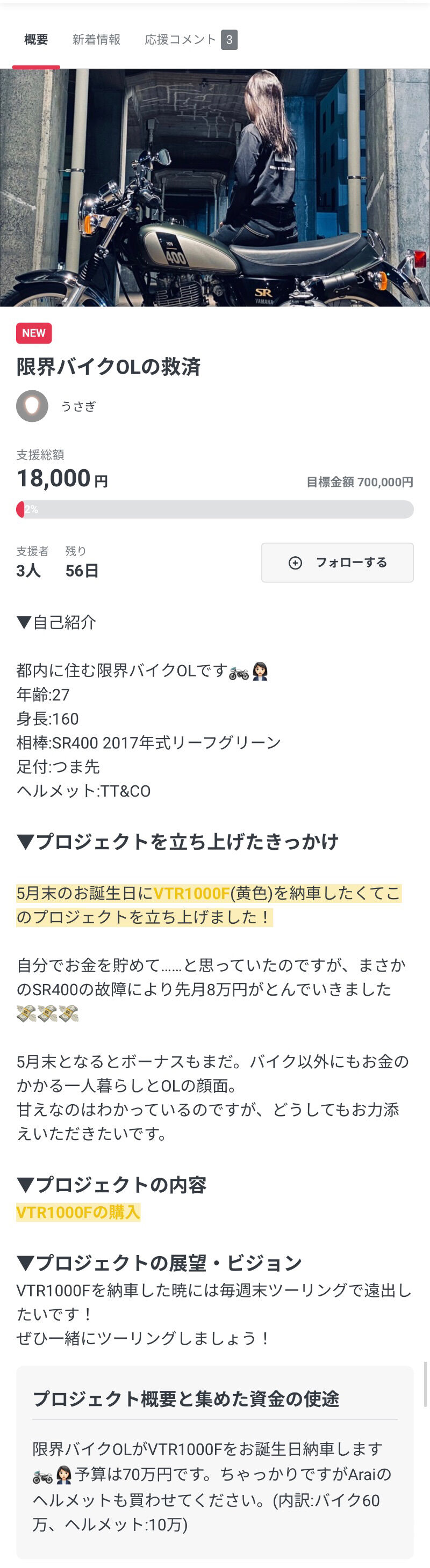 【画像】バイク女子さん、ヤバすぎるクラウドファンディングを開催!!wwwwwww 2023/2/21 不思議.net 1: それでも動く名無し 2023/02/21(火) 07:10:59.74 ID:tUR7XFlNH https://i.imgur.com/xqRnjl3.jpg おまえら急げ!!wwwwwwwwwwwwwww 391: それでも動く名無し 2023/02/21(火) 08:40:16.70 ID:ZooToAxoM Twitterで結構叩かれまくってるけどこれ割に合ってるのか? 続きを読む Source: 不思議.net
