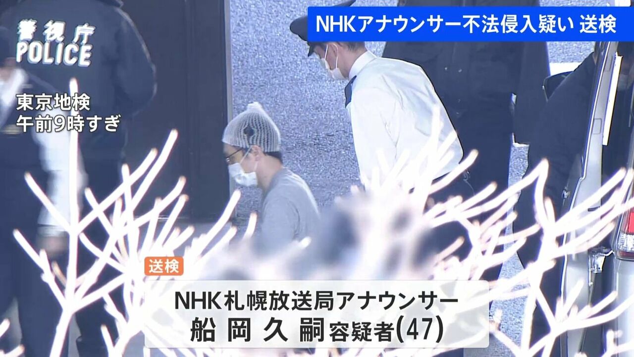 けさ送検されたNHK札幌放送局の船岡久嗣容疑者(47)は、今月17日の深夜、東京・中野区の知人女性が住むマンションに侵入した疑いがもたれています。