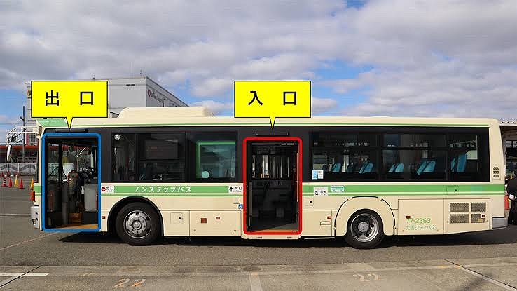 一律料金のところは精算不要の支払い機だから乗車時に料金支払いするので前乗り(後降り)