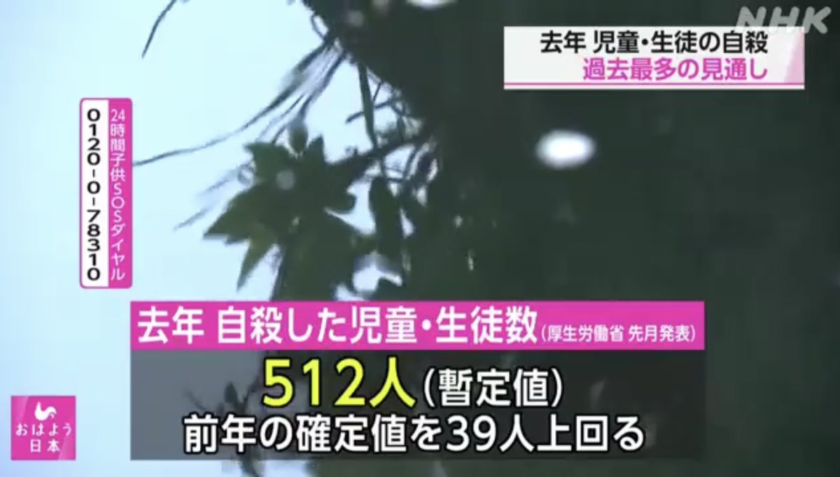 昨年の子どもの自殺、過去最悪の512人…4割が男子高校生https://t.co/3eSnlTUKsG#社会
