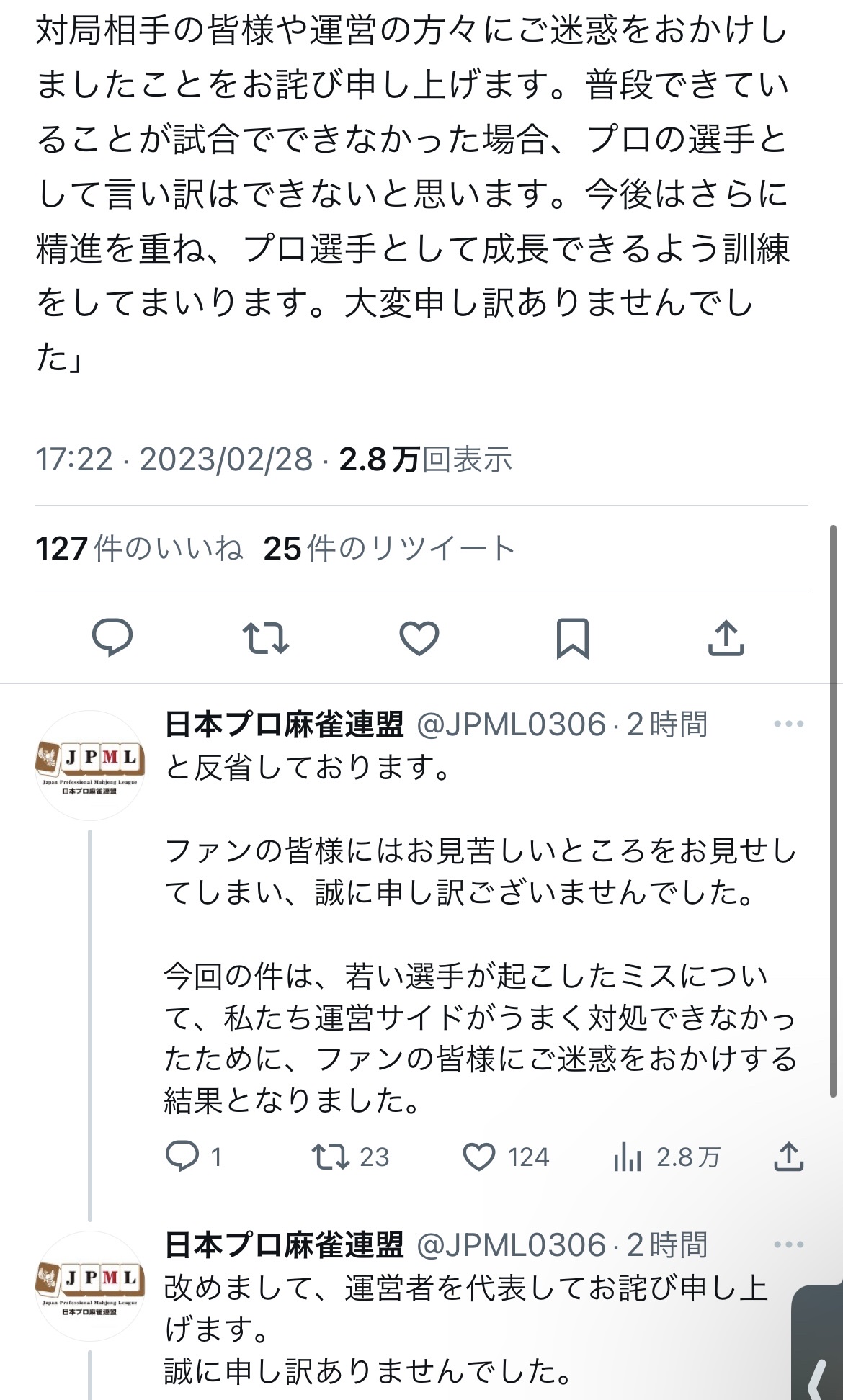 — 日本プロ麻雀連盟 (@JPML0306) February 28, 2023