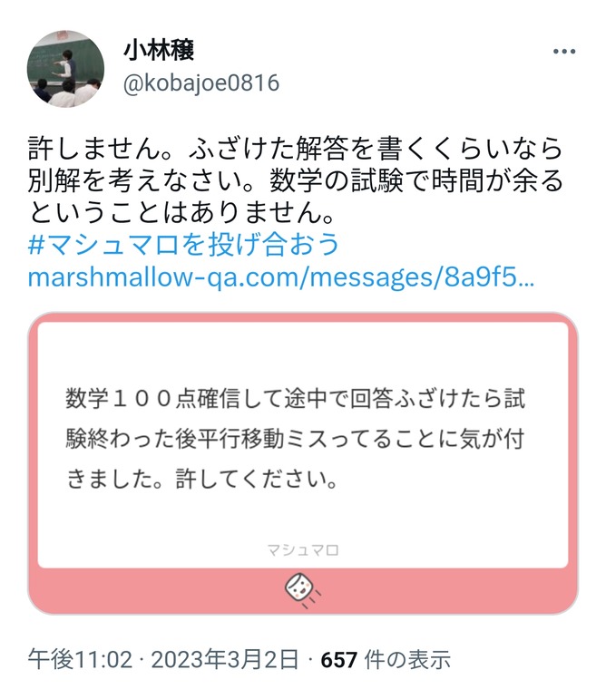 許しません。ふざけた解答を書くくらいなら別解を考えなさい。数学の試験で時間が余るということはありません。
